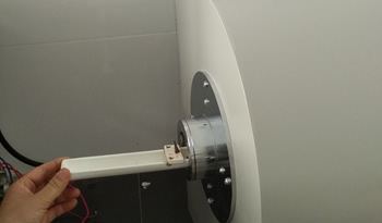 2、在硅碳管的噴鋁部位裝上電極,將帶磁珠導(dǎo)線接到爐體接線柱上,注意:硅碳管卡子不要碰到爐體的金屬部分以免短路。